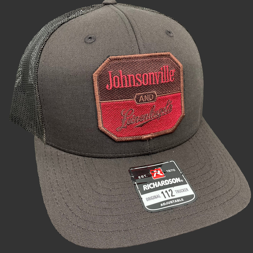 Brown Johnsonville and Leinenkugel's Original 112 Trucker Richardson Cap with adjustable back snap.